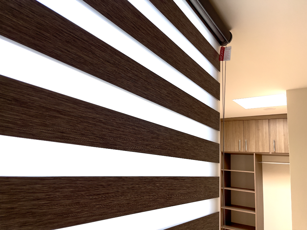 Ahora bien, en el caso de de estas persianas tendremos un gran reto y es el cubrir la privacidad y la obscuridad en todo momento. Esto se vuelve un reto con este estilo de persianas ya que por su accionamiento solo podremos tenerlas arriba o abajo y esto no nos favorece en el control de luz o en el tema de la privacidad. Para este caso la mejor opción será el estilo día y noche el cual consiste en instalara dos persianas enrollables dentro de un mismo accesorio de soporte o soporte doble.